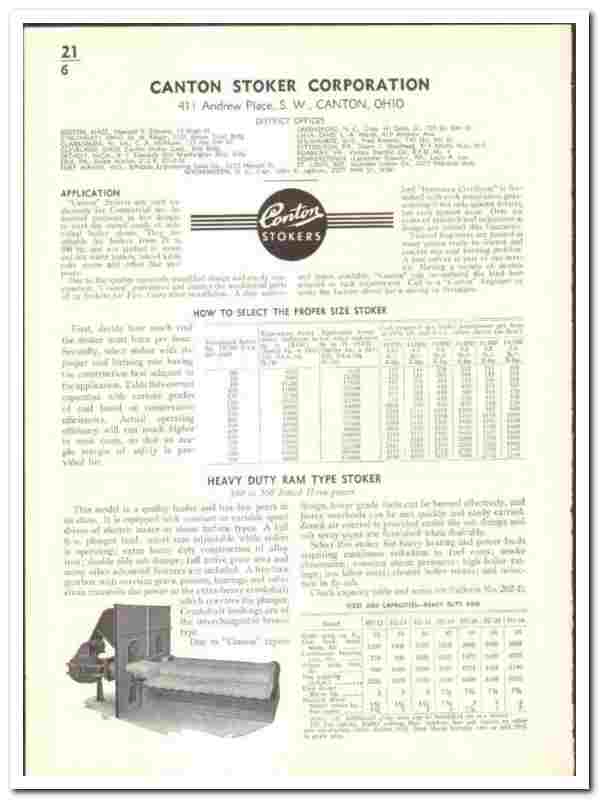 Canton Stoker Corp 1939 vintage heating catalog ram type worm feed