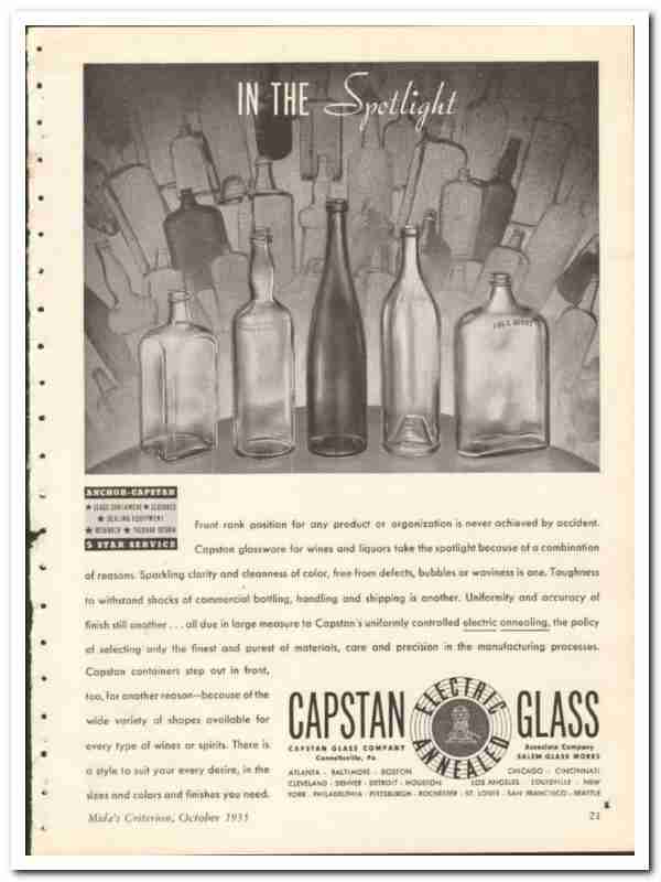 Capstan Glass Company 1935 vintage bottle ad wine liquor spotlight