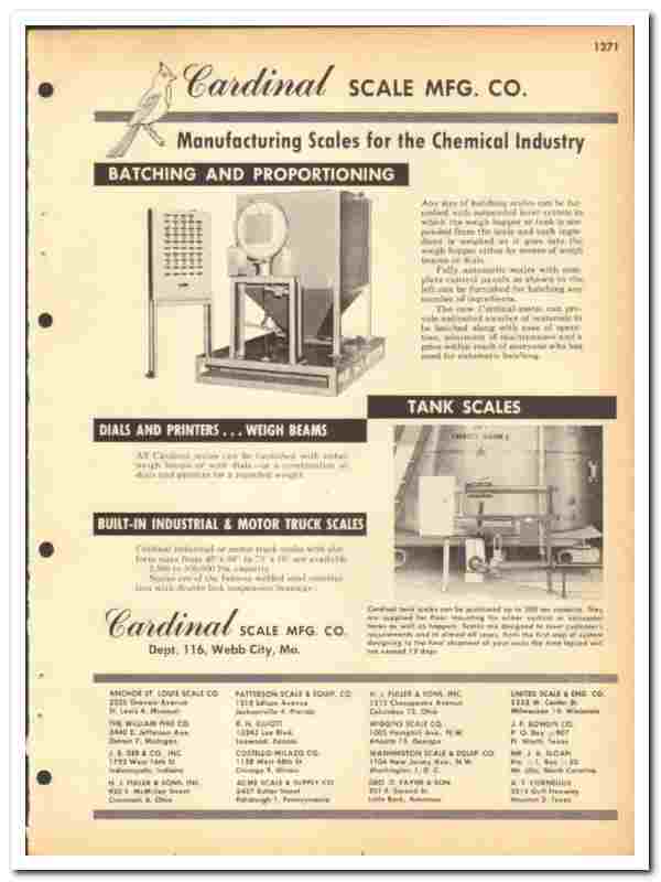 Original 1964 industrial trade vintage catalog for the CARDINAL SCALE MANUFACTURING COMPANY. Main office and plant were located in Webb City, MO.