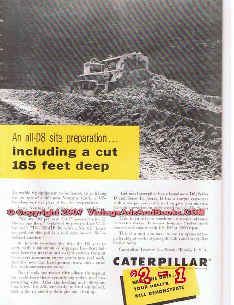 caterpillar tractor company 1955 d8 site preparation vintage ad