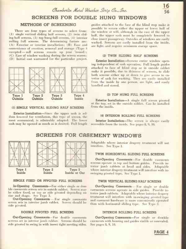 Chamberlin Metal Weather Strip Company 1938 Vintage Catalog Screens