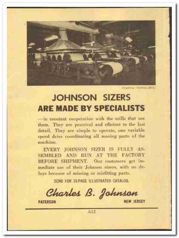 Charles B Johnson 1952 vintage textile ad sizers mill machine