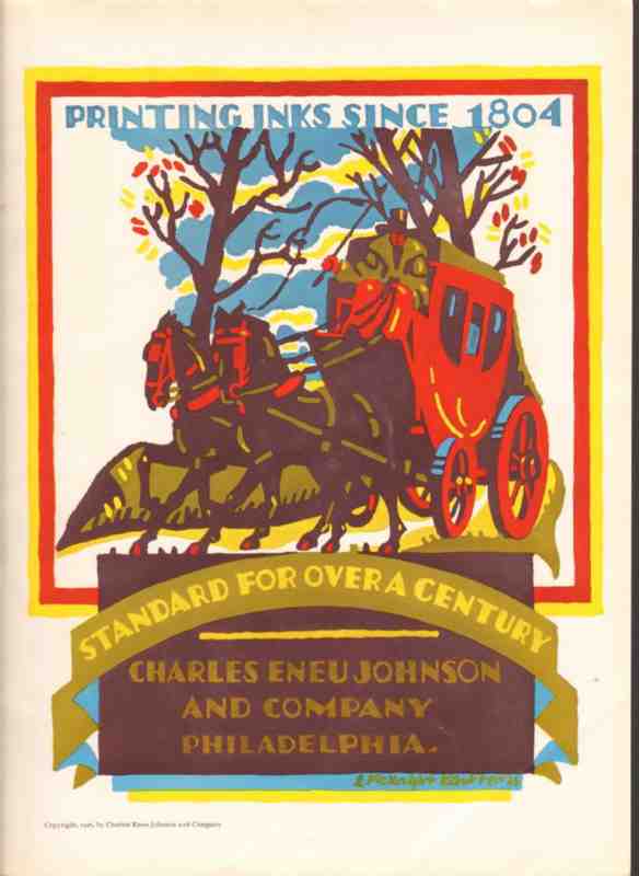 Original vintage ad for CHARLES ENEU JOHNSON COMPANY in Philadelphia. Printing inks since 1804. Elegant horses and carriage pictured. Reverse side is Eneu Black No. 125 snow landscape. This 1926 unique old two sided commercial printing industry trade magazine advertisement would display beautifully matted and framed.