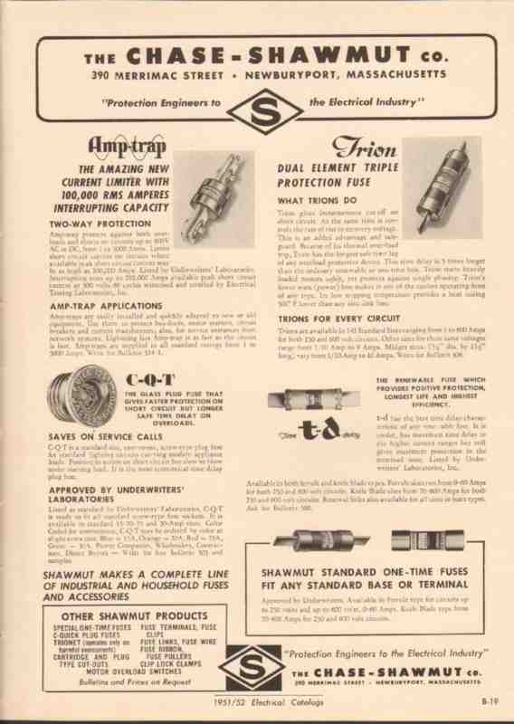 Chase-Shawmut Company 1952 Vintage Catalog Electrical Fuses Trion CQT
