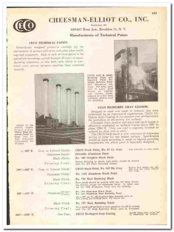 Original 1945 industrial paint trade vintage catalog for the CHEESMAN-ELLIOT COMPANY, INC. (CECO). Main office and plant were located at 539-647 Kent Avenue, Brooklyn, NY. (Established 1876).