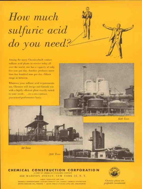 chemical construction corp 1953 how much sulfuric acid vintage ad