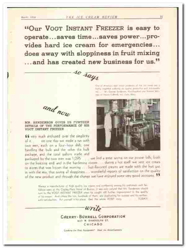 Cherry-Burrell Corp 1937 vintage ice cream ad Vogt Instant Freezer