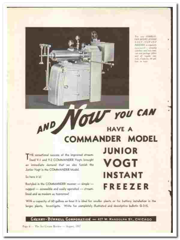 Manufacturers of the Commander Model Junior Vogt Instant Freezer. 'And Now You Can Have'.