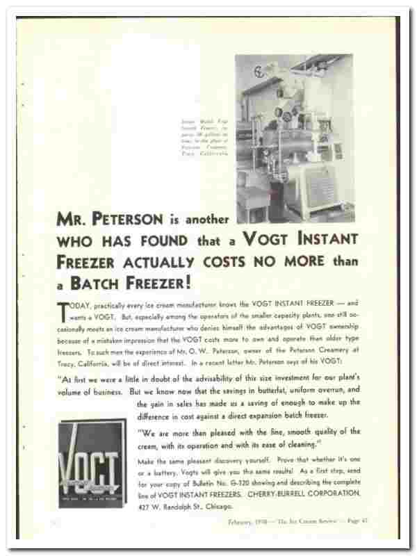 Mr. Peterson is another who has Found that a Vogt Instant Freezer Actually Costs no more than a Batch Freezer!'.