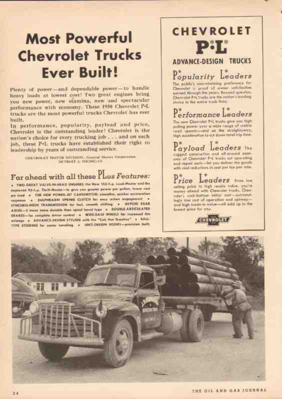 chevrolet 1950 p-l powerful trucks j r robinson houston tx vintage ad
