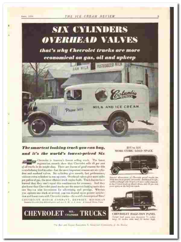 Chevrolet Motor Company 1934 vintage truck ad six-cylinders panel