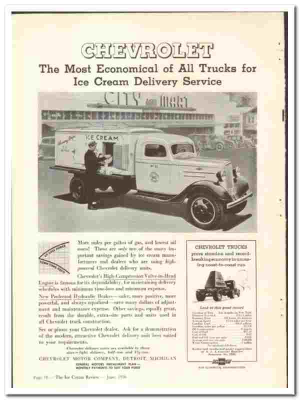 Chevrolet Motor Company 1936 vintage truck ad ice cream delivery