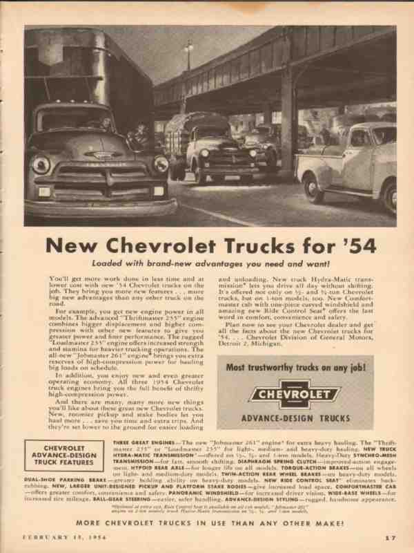 chevrolet 1954 new trucks for 54 loaded advantages you want vintage ad