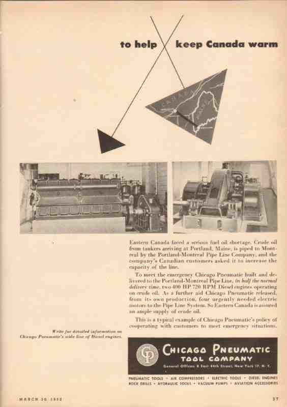 Chicago Pneumatic Tool Company 1950 Vintage Ad Portland-Montreal Pipe