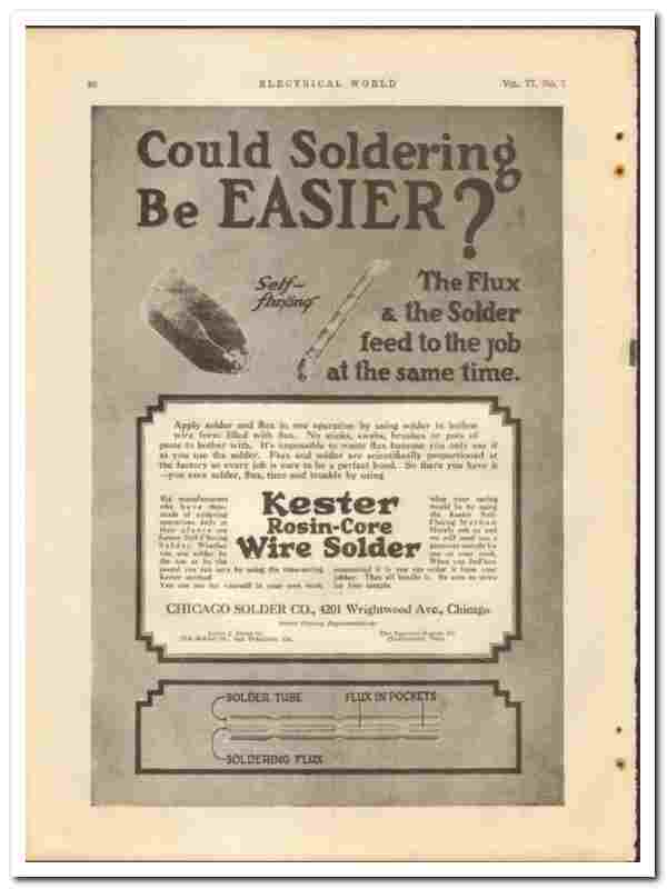 Chicago Solder Company 1921 vintage electrical ad Kester rosin-core