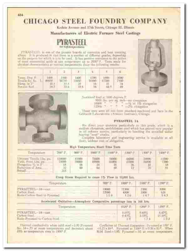 Chicago Steel Foundry Company 1945 vintage metal catalog Pyrasteel