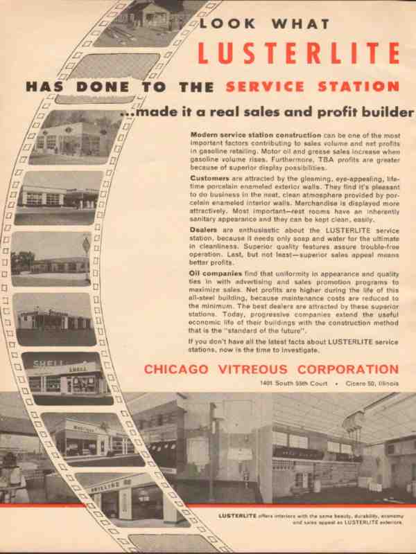 chicago vitreous corp 1955 lusterlite service station vintage ad