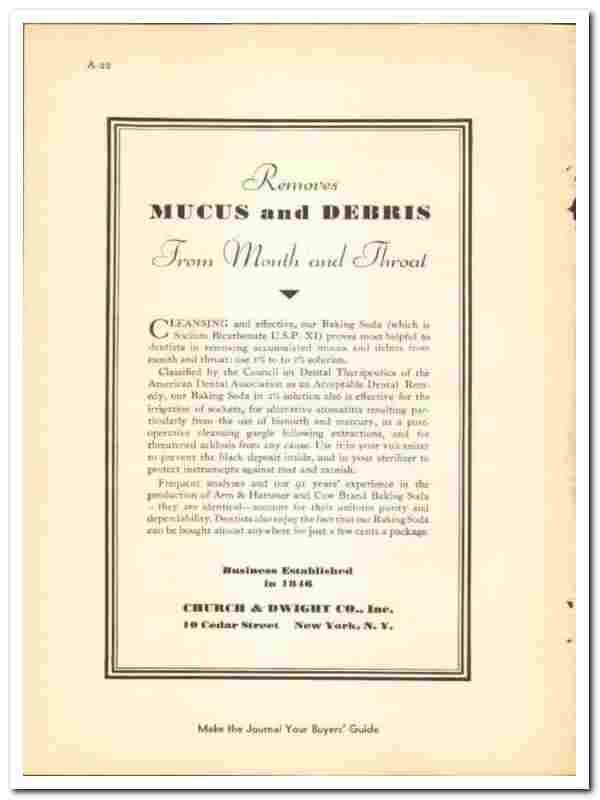Church Dwight Company 1938 vintage dental ad cleansing mucus debris
