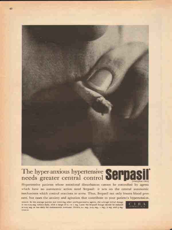 ciba 1959 serpasil hyper-anxious hypertensive medical vintage ad
