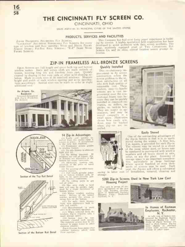 Cincinnati Fly Screen Company 1938 Vintage Catalog Zip-In Frameless