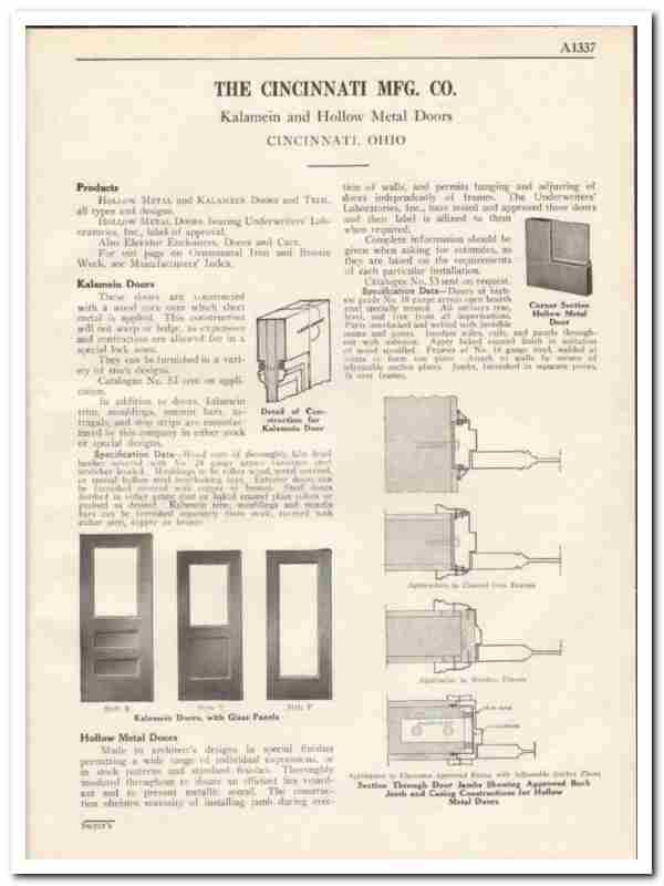 Cincinnati Mfg Company 1931 Vintage Catalog Door Kalamein Hollow Metal