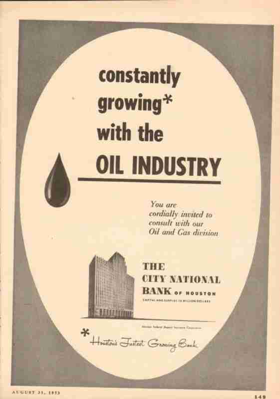 city national bank 1953 houston serving expand oil industry vintage ad