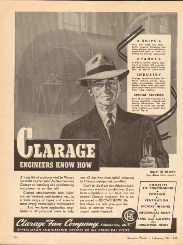 clarage fan company 1943 engineers know how ships tanks ww2 vintage ad