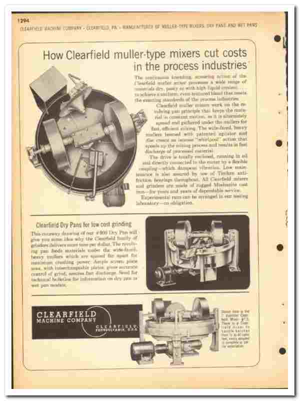 Clearfield Machine Company 1964 vintage industrial catalog mixers pans