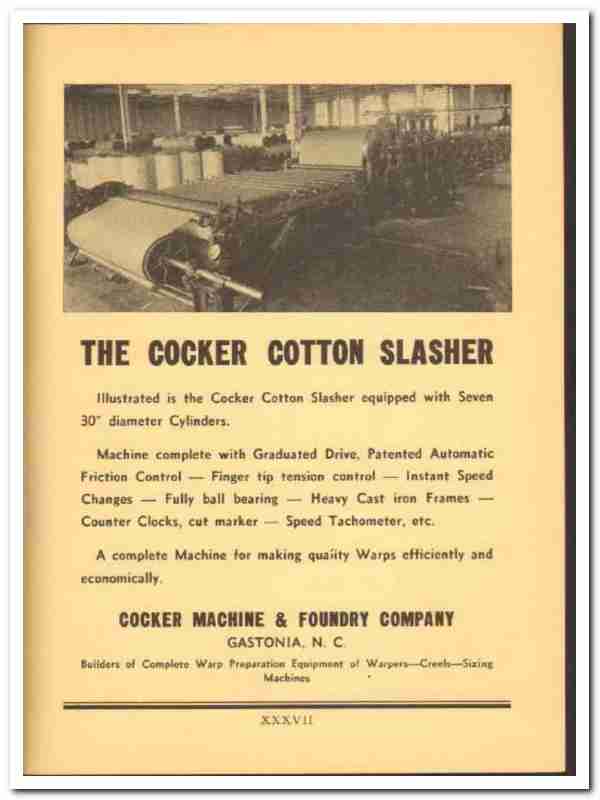 Original 1941 textile trade vintage ad for COCKER MACHINE & FOUNDRY COMPANY. Main office and plant was located in Gastonia, NC.