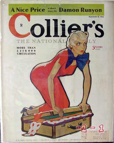 Original vintage magazine cover, COLLIERS cover. Woman with suitcase. Art by Robert Oreid. Old September 8,1934 Collier's cover.