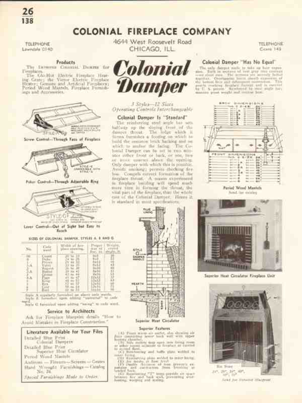 Colonial Fireplace Company 1938 Vintage Catalog Heat Circulator Damper