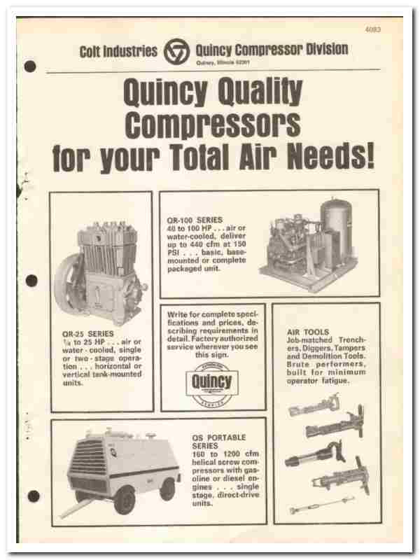 Colt Industries Inc 1970 vintage oil gas catalog Quincy Compressor