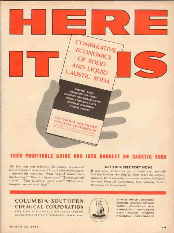 columbia-southern chemical 1954 here it is caustic soda vintage ad