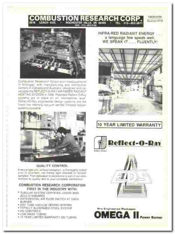 Combustion Research Corp 1990 vintage heating catalog Reflect-O-Ray