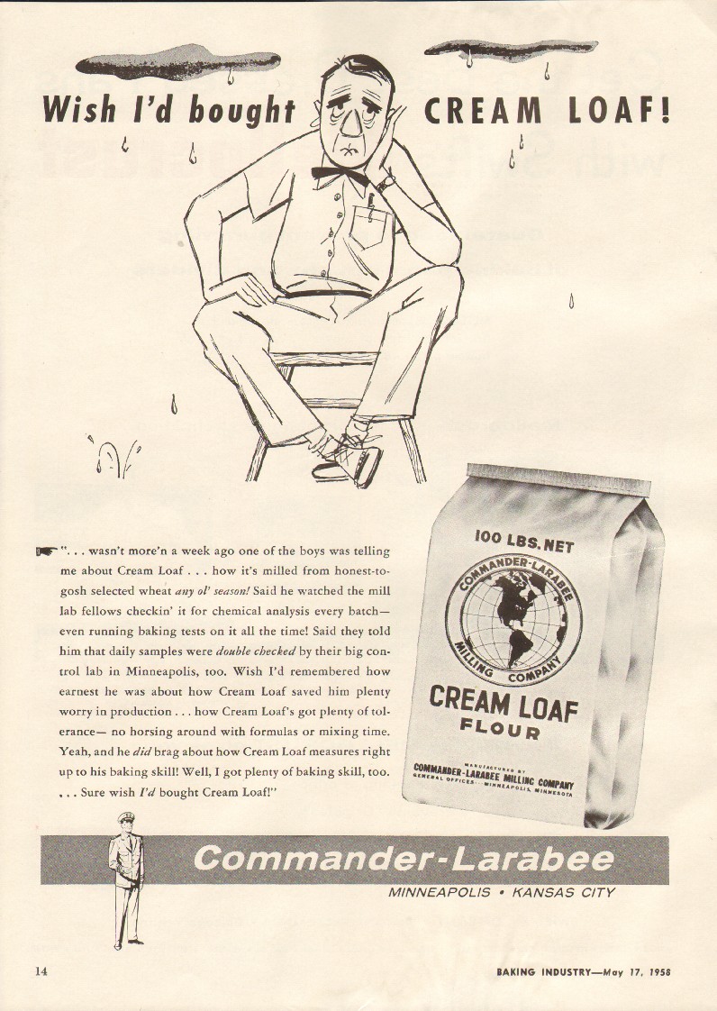 commander-larabee milling company 1958 cream loaf flour vintage ad