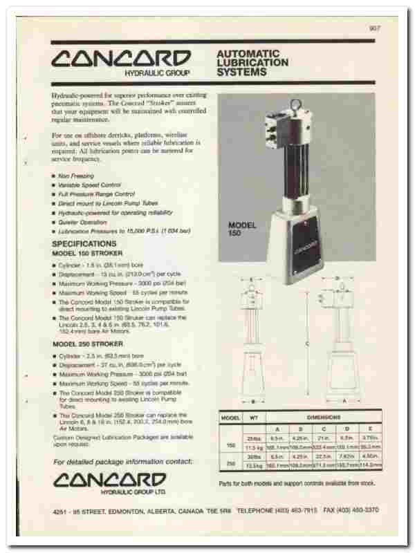 Concord Hydraulic Group LTD 1990 vintage oil gas catalog lubrication