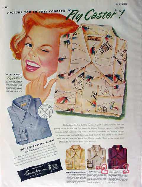 coopers 1949 fly caster mans fishing shirt vintage ad
