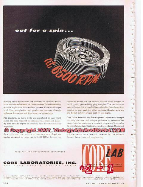 Core Laboratories Inc 1955 Vintage Ad Oil Field Reservoir Out For Spin