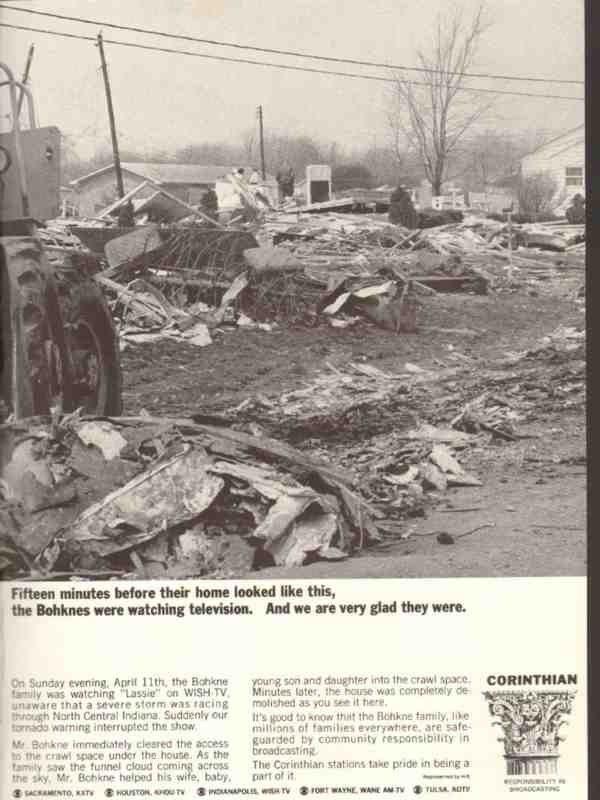 corinthian broadcasting 1965 wish-tv bohkne family tornado vintage ad