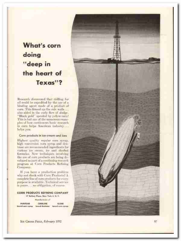 Corn Products Refining Company 1952 Vintage Ad Ice Cream Texas Oil