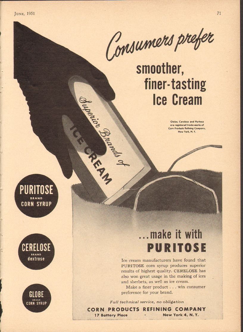 Corn Products Refining Company 1951 Vintage Ad Ice Cream Puritose