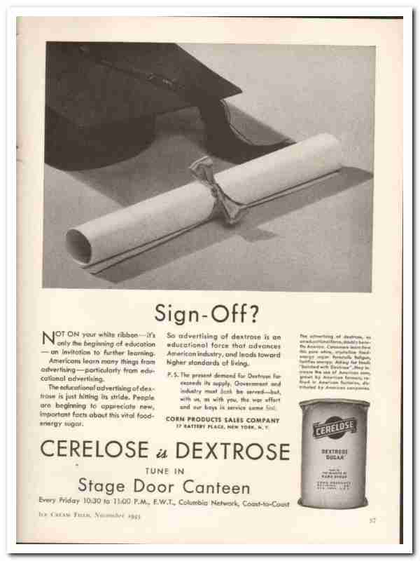 Corn Products Sales Company 1943 vintage ad ice cream Cerelose sign