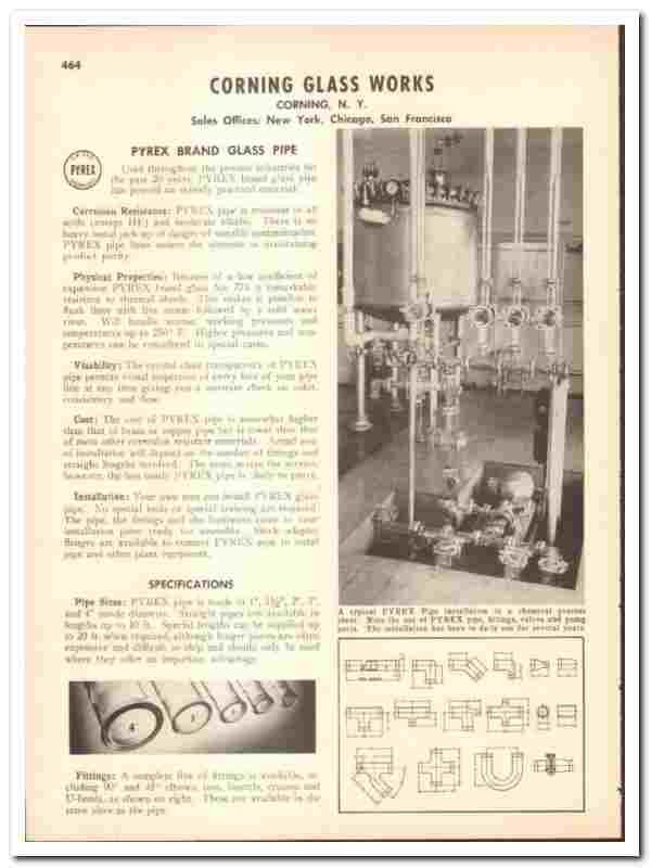 Corning Glass Works 1947 vintage industrial catalog Pyrex Pipe Joints