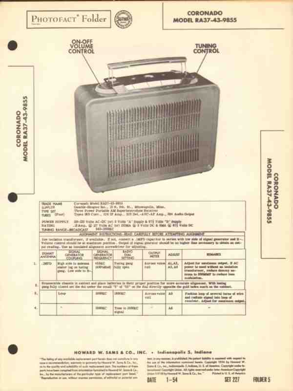 coronado model ra37-43-9855 am radio receiver sams photofact manual