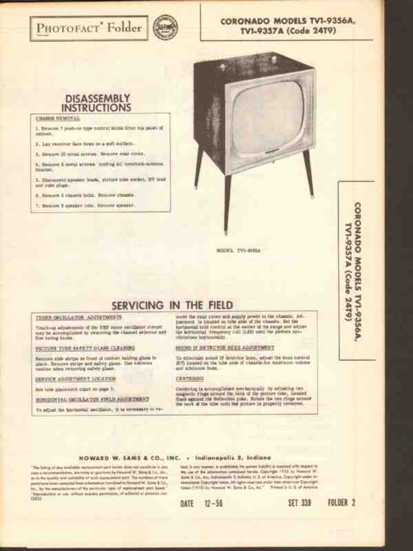 coronado model tv1-9356a tv1-9357a tv television sams photofact manual