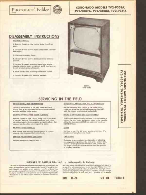 coronado model tv2-933xa tv2-934xa tv television sams photofact manual