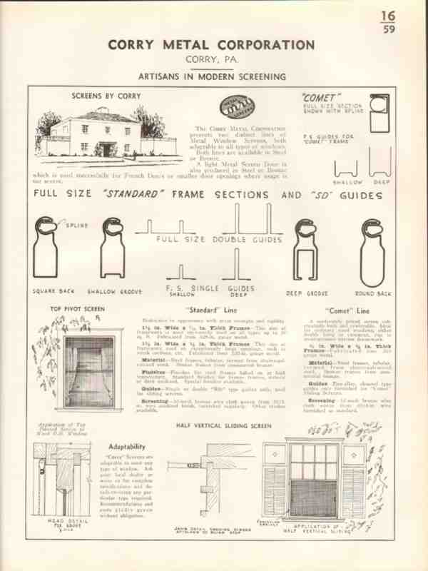 Corry Metal Corp 1938 Vintage Catalog Window Screens Artisians Modern