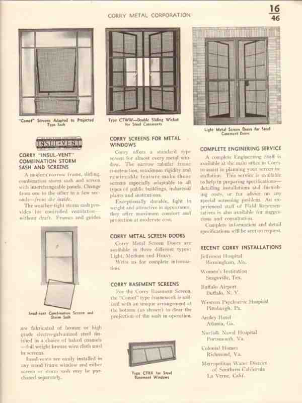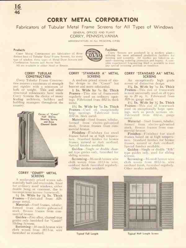 Corry Metal Corp 1938 Vintage Catalog Window Screens Artisians Modern