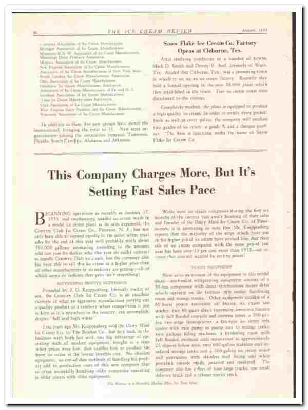 Country Club Ice Cream Company 1933 vintage dairy article Knippenberg