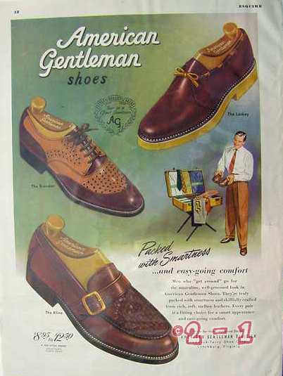 Original vintage magazine ad, CRADDOCK TERRY SHOE CORPORATION, of Lynchburg, VI. American Gentleman Shoes Packed with Smartness. Old 1949 shoe advertisement